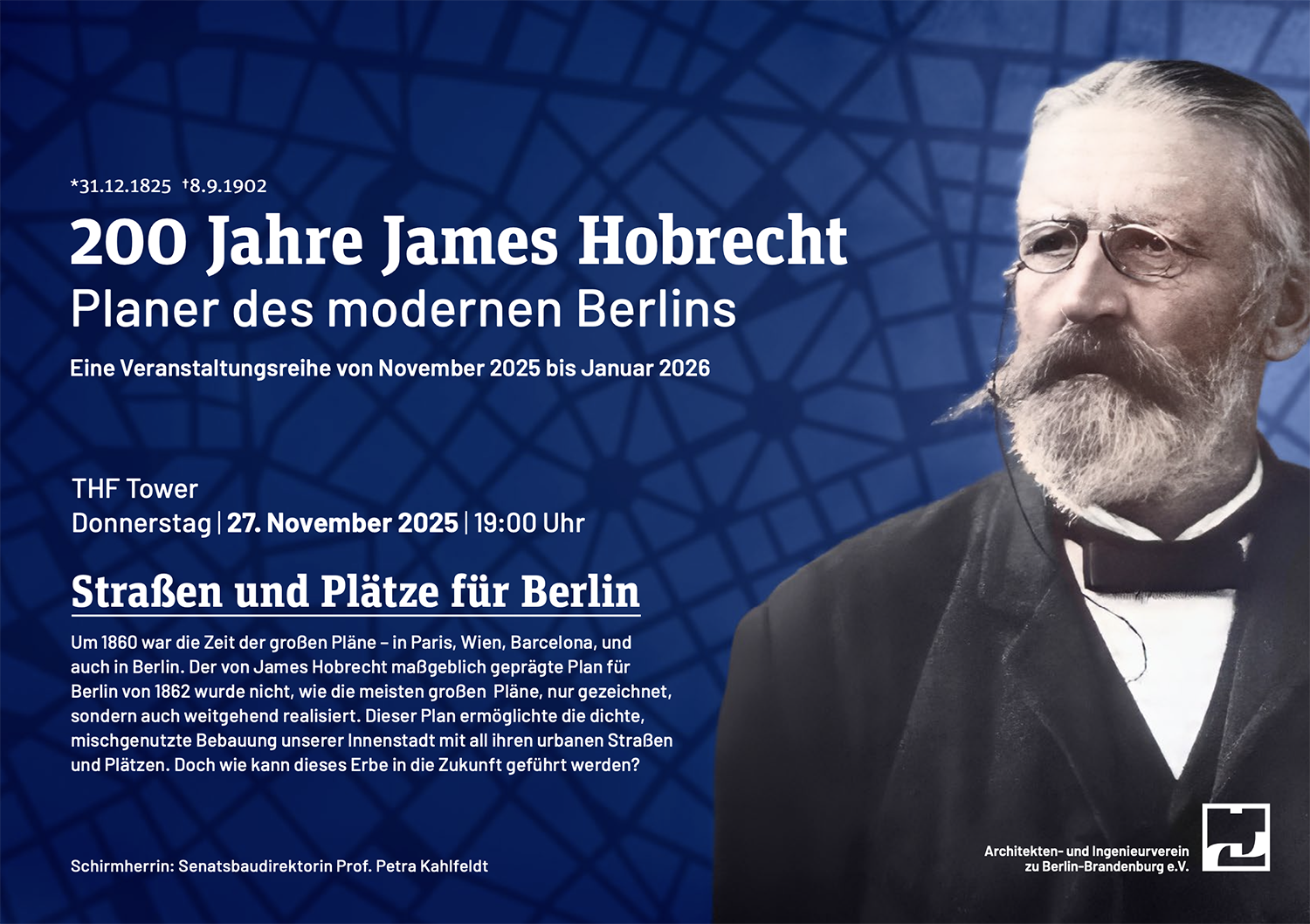 Impulse für die Stadt von morgen – 200 Jahre James Hobrecht / Veranstaltungsreihe des AIV. Auftakt: Donnerstag, 27. November um 19:00 im THF Tower